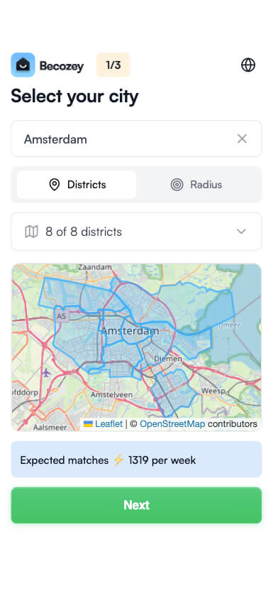 "I moved to Amsterdam from Spain and was overwhelmed, within two weeks Becozey sent me 12 listings that matched my budget and commute. I applied to three and got invited to view one the same day. It saved me months of searching and a lot of stress. Highly recommend!"